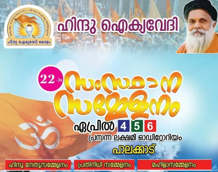 4ന് രാവിലെ 10ന് പ്രസന്നലക്ഷ്മി ഓഡിറ്റോറിയത്തില് നടക്കുന്ന ഹിന്ദു നേതൃസമ്മേളനം സ്വാമി ഉദിത് ചൈതന്യ ഉദ്ഘാടനം ചെയ്യും. ഹിന്ദുഐക്യവേദി മുഖ്യ രക്ഷാധികാരി കെ.പി. ശശികല ടീച്ചര് അധ്യക്ഷത വഹിക്കും. സംസ്ഥാന രക്ഷാധികാരി പദ്മശ്രീ ആചാര്യ എം.കെ. കുഞ്ഞോല് നിലവിളക്ക് തെളിയിക്കും. സംസ്ഥാനത്തെ 250ലധികം ഹൈന്ദവ സംഘടനകളെ പ്രതിനിധീകരിച്ച് 400ഓളം നേതാക്കള് പങ്കെടുക്കും. സംസ്ഥാന വര്ക്കിങ് പ്രസിഡന്റ് വത്സന് തില്ലങ്കേരി വിഷയാവതരണം നടത്തും. 5ന് രാവിലെ 10ന് നടക്കുന്ന പ്രതിനിധി സമ്മേളനത്തില് കെ.പി. ശശികല ടീച്ചര് പതാക ഉയര്ത്തും. കന്യാകുമാരി വെള്ളിമല വിവേകാനന്ദാശ്രമം സ്വാമി ചൈതന്യാനന്ദജി മഹാരാജ് ഉദ്ഘാടനം ചെയ്യും. സംസ്ഥാന അധ്യക്ഷന് ആര്.വി. ബാബു അധ്യക്ഷത വഹിക്കും.