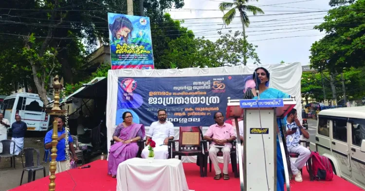 പാറശാല: ലഹരി വിരുദ്ധ സന്ദേശമുയത്തി ജന്മഭൂമിയുടെ അൻപതാമത് വാർഷികത്തോടനുബന്ധിച്ച് നടത്തുന്ന ജന ജാഗ്രതാ യാത്ര പാറശ്ശാല ജംഗ്ഷനിൽ മുൻ ഡിജിപി ആർ.ശ്രീലേഖ ഉദ്ഘാടനം ചെയ്തു. സത്യത്തിന്റെ നേർക്കാഴ്ചയുമായി അൻപതാണ്ട് എത്തിയ ജന്മഭൂമിയുടെ നേതൃത്വത്തിൽ നടത്തുന്ന ജനജാഗ്രതാ യാത്രയിൽ പങ്കാളിയായതിൽ അഭിമാനിക്കുന്നുവെന്ന് ആർ.ശ്രീലേഖ പറഞ്ഞു.
