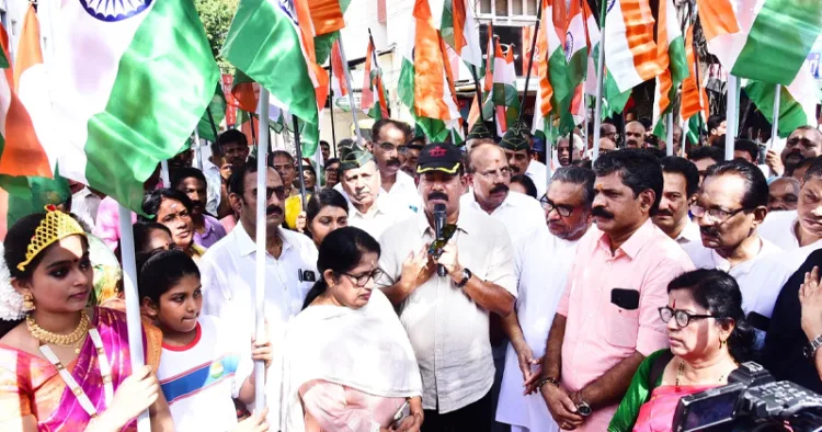 ഓപ്പറേഷന് സിന്ദൂര് വിജയത്തില് കേന്ദ്ര സര്ക്കാരിനും സൈന്യത്തിനും അഭിവാദ്യമര്പ്പിച്ച് സലൂട്ട് ഇന്ത്യയുടെ നേതൃത്വത്തിലായിരുന്നു ത്രിവര്ണ സ്വാഭിമാന യാത്ര. ഭാരത് മാതാ കീ ജയ്, വന്ദേ മാതരം മുഴക്കിയും അണിനിരന്ന സ്വാഭിമാനയാത്രയില് നൂറുകണക്കിന് ആളുകള് അണിനിരന്നു. എറണാകുളം ഗവ. ഗസ്റ്റ് ഹൗസിനു മുന്പില് നിന്നും ആരംഭിച്ച യാത്ര മേജര് രവി ഉദ്ഘാടനം ചെയ്തു.