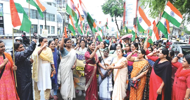 തിരുവനന്തപുരം: പഹല്‍ഗാമില്‍ നിരപരാധികളെ മതം ചോദിച്ച് കൊന്ന ഭീകരര്‍ക്ക് സിന്ദൂറിലൂടെ ചുട്ട മറുപടി നല്കിയ ഭാരത സൈനികര്‍ക്കും നരേന്ദ്ര മോദി സര്‍ക്കാരിനും അഭിവാദ്യം അര്‍പ്പിച്ച് മഹിളാ സമന്വയവേദി സ്വാഭിമാനയാത്ര സംഘടിപ്പിച്ചു.