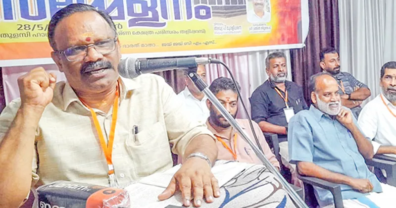 തളിപ്പറമ്പ്: 1991 ലെ ഒരു പത്രവാര്ത്തയുടെ അടിസ്ഥാനത്തില് ഹൈക്കോടതി സ്വയമെടുത്ത കേസിന്റെ വിധി അപ്പാടെ നടപ്പാക്കാന് സംസ്ഥാന സര്ക്കാര് തയാറാകണമെന്ന് ഹിന്ദു ഐക്യവേദി സംസ്ഥാന വര്ക്കിങ് പ്രസിഡന്റ് വത്സന് തില്ലങ്കേരി. മലബാര് ദേവസ്വം എംപ്ലോയീസ് സംഘ് ഒന്പതാം വാര്ഷിക സമ്മേളനത്തില് മുഖ്യ പ്രഭാഷണം നടത്തുകയായിരുന്നു.