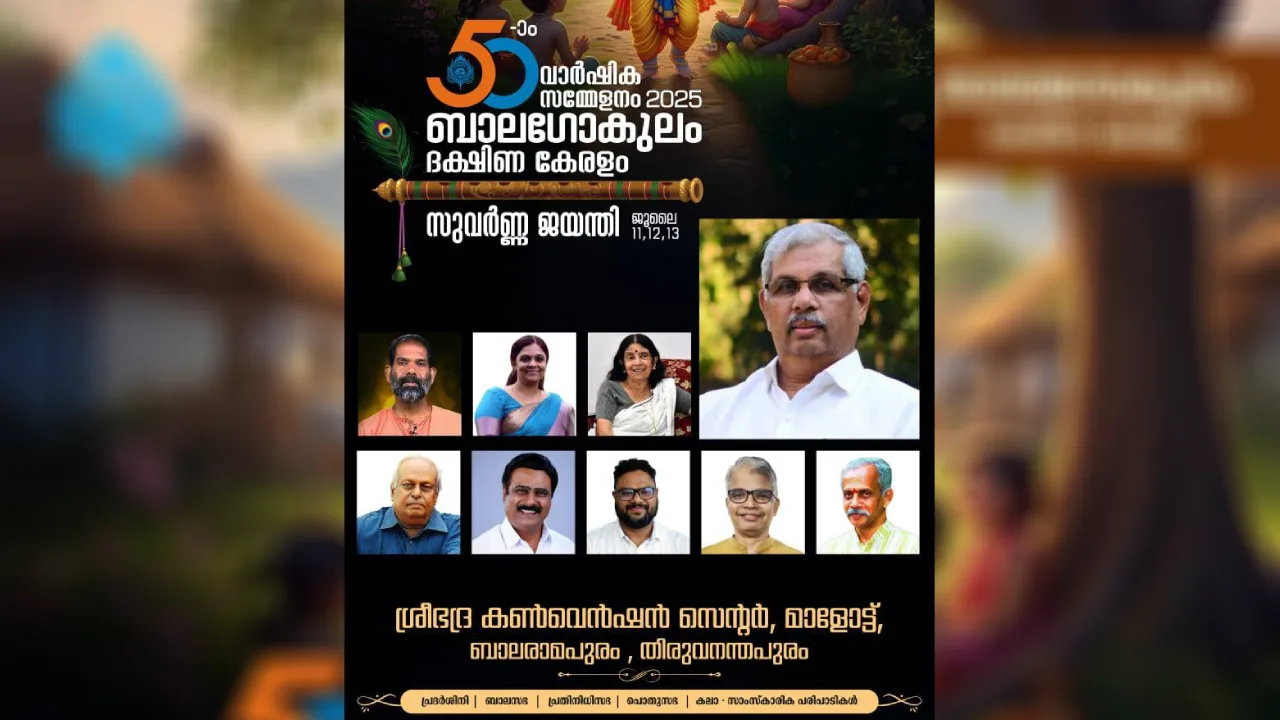 ബാലഗോകുലം ദക്ഷിണ കേരളം അധ്യക്ഷന്‍ ഡോ. എന്‍. ഉണ്ണികൃഷ്ണന്‍ അധ്യക്ഷത വഹിക്കുന്ന സമ്മേളനത്തില്‍ ‘കേരള നവോത്ഥാന തുടര്‍ച്ച ബാലഗോകുലത്തിലൂടെ’ എന്ന വിഷയത്തില്‍ കുരുക്ഷേത്ര പ്രകാശന്‍ എംഡി കാ.ഭാ. സുരേന്ദ്രന്‍ പ്രഭാഷണം നടത്തും.