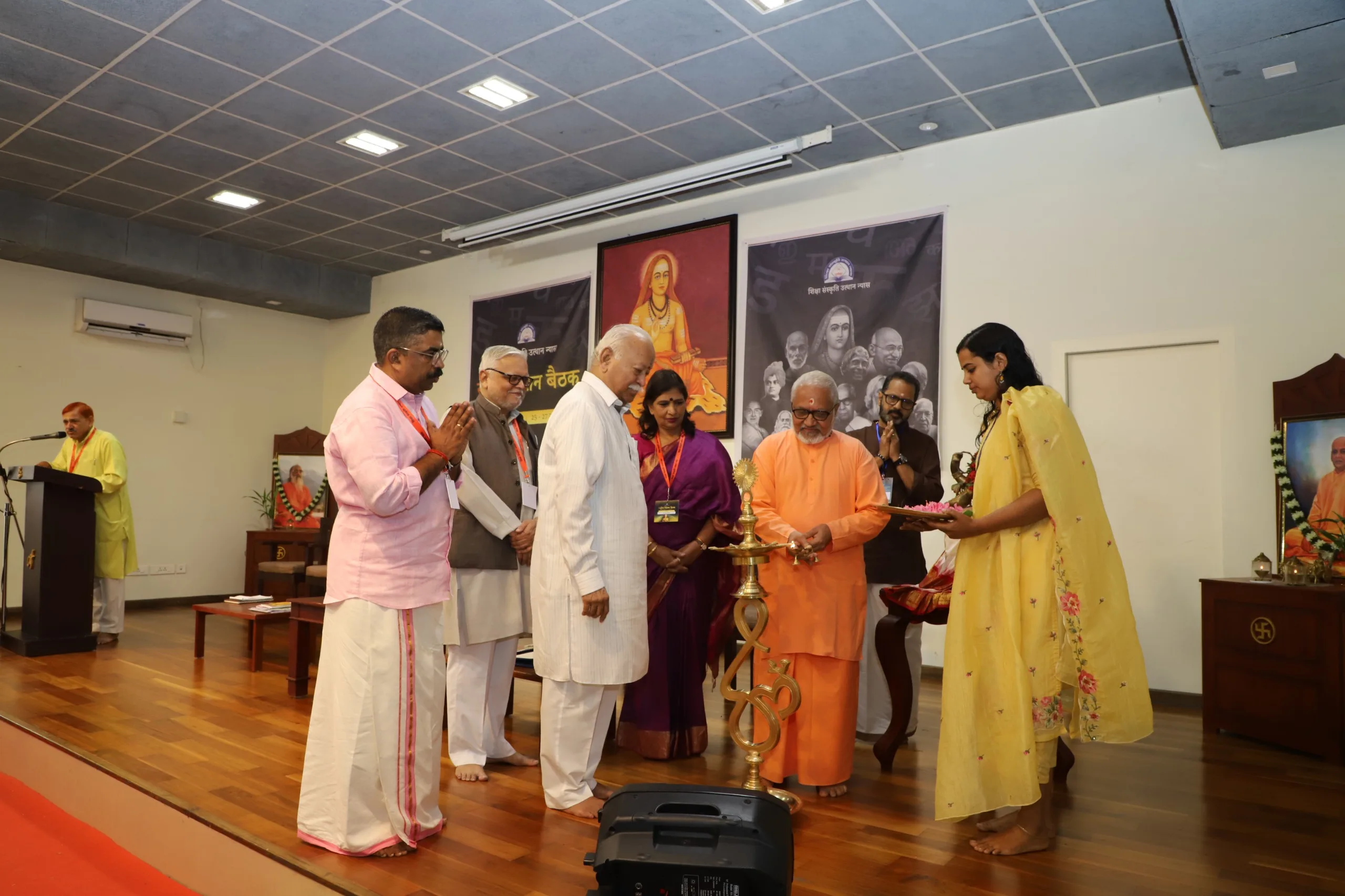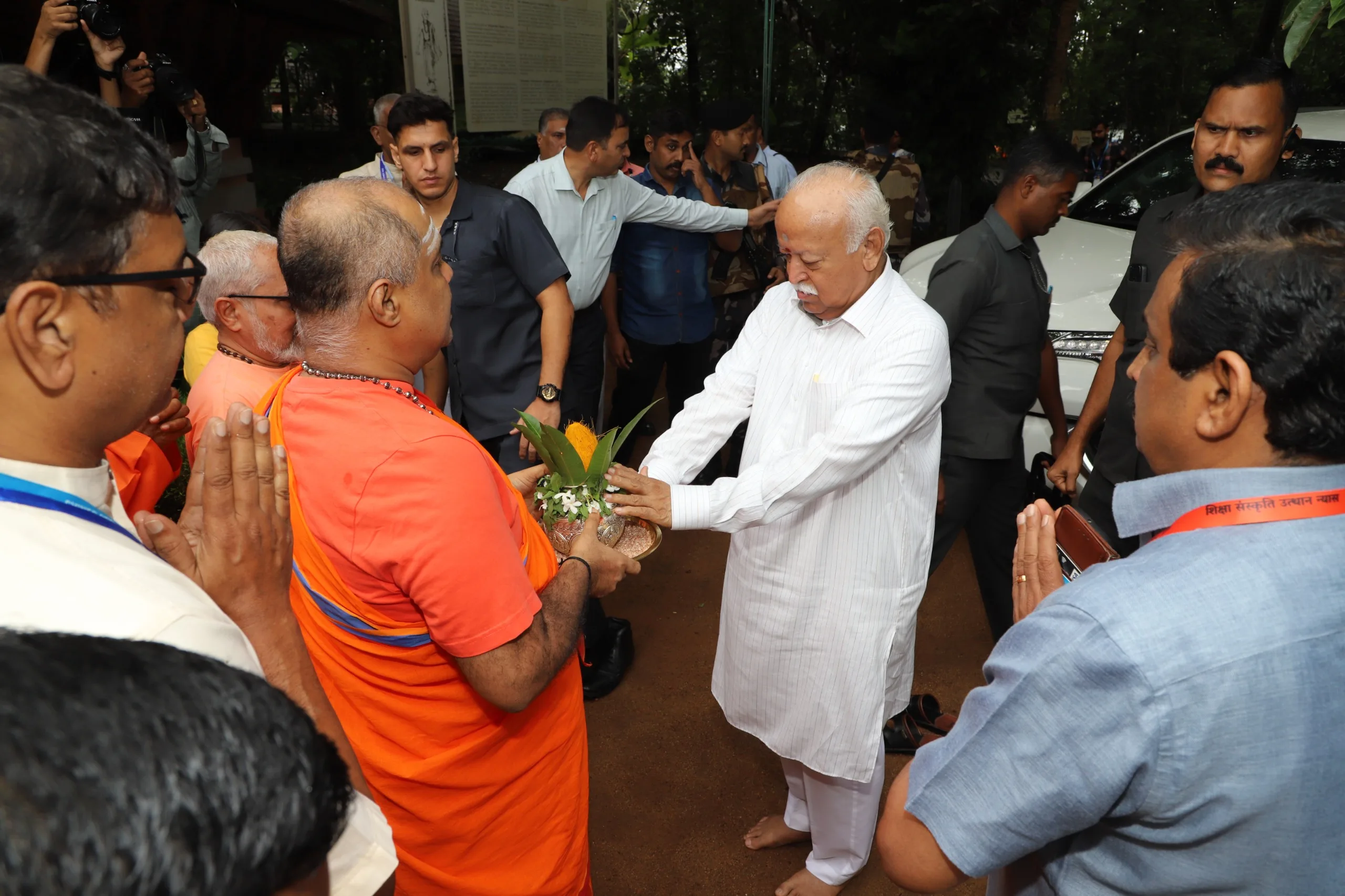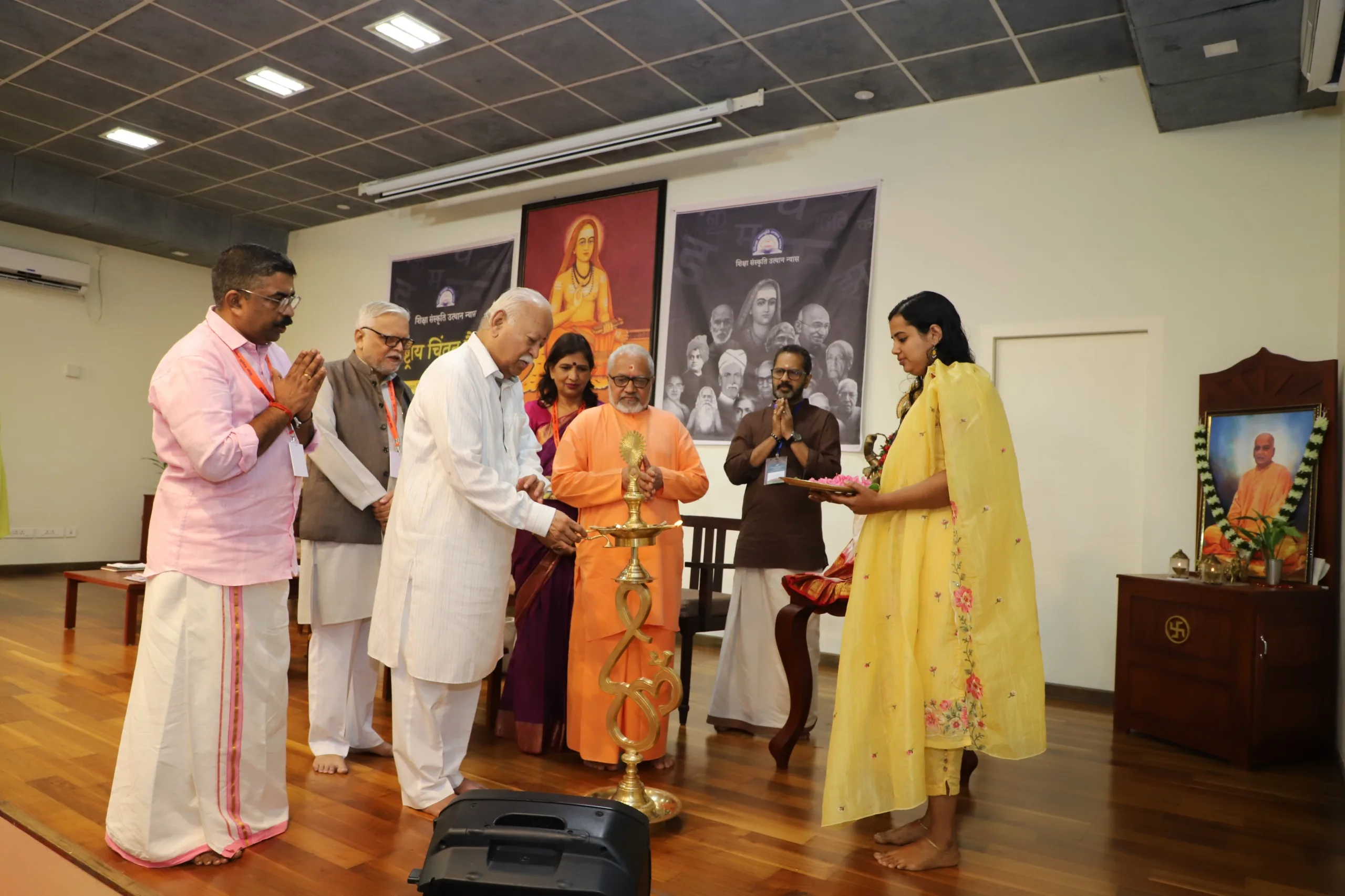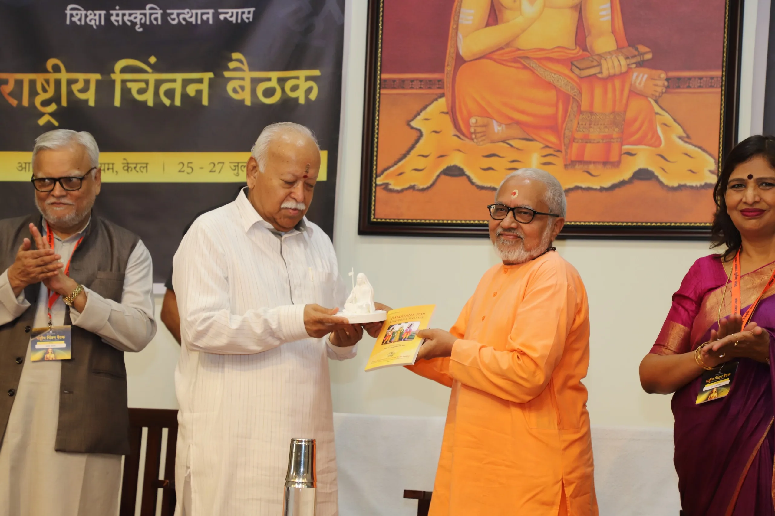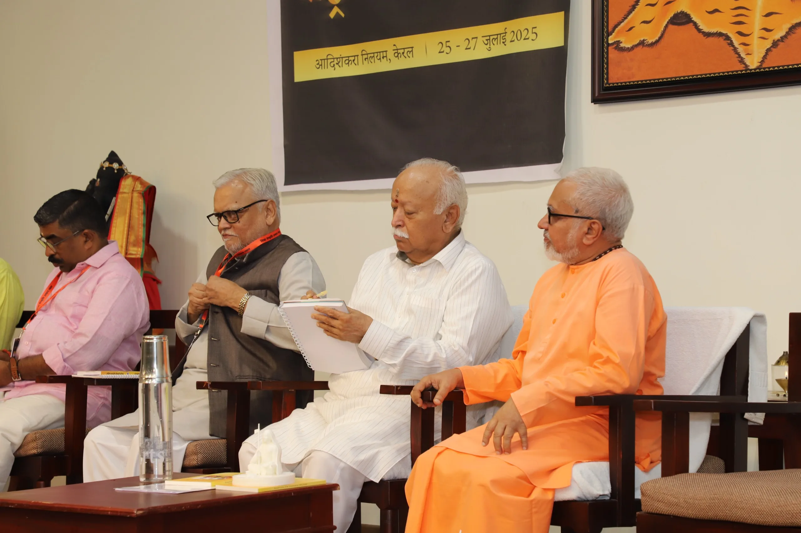 ശ്രീ ശങ്കരാചാര്യരുടെ ജന്മഗൃഹം സന്ദർശിച്ച മോഹൻ ജി ഭഗവത് ചിത് വിലാസം സഭാഗൃഹത്തിൽ നടക്കുന്ന ജ്ഞാനസഭയുടെ ഭാഗമായ രണ്ടു ദിവസത്തെ ദേശീയ ചിന്തൻ ബൈഠക്ക് നിലവിളക്കിലേയ്ക്ക് ദീപം പകർന്ന് ഉദ്ഘാടനം ചെയ്തു.