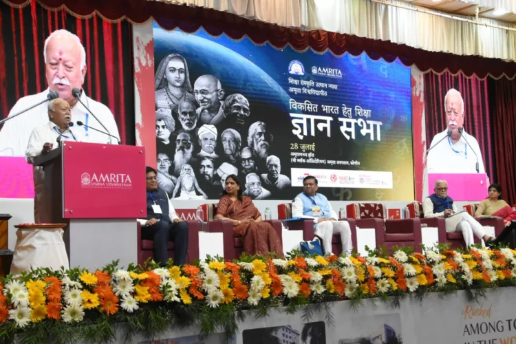 കൊച്ചി: സാമൂഹ്യപരിവർത്തനവും ലോകക്ഷേമവും സാധ്യമാക്കുന്നതാകണം വിദ്യാഭ്യാസമെന്ന് ആർ എസ് എസ് സർസംഘചാലക് ഡോ. മോഹൻ ഭാഗവത് . വിദ്യ അവിദ്യ എന്ന് രണ്ടു തരത്തിലുള്ള ആശയങ്ങൾ ലോകത്തുണ്ട്. മനുഷ്യന്റെ ഭൗതിക ജീവിതത്തിലും ആത്മീയമായ അന്വേഷണത്തിലുംപ്രധാന പങ്ക് വഹിക്കുന്ന ഈ രണ്ട് ആശയങ്ങളെയും ഭാരതം ഉയർത്തിപ്പിടിക്കുന്നുണ്ടെന്ന് അദ്ദേഹം ചൂണ്ടിക്കാട്ടി. ആദ്ധ്യാത്മികതയുടെ നാടാണ് ഭാരതമെന്ന് അദ്ദേഹം പറഞ്ഞു.ഇടപ്പള്ളി അമൃത ഹോസ്പിറ്റലിലെ അമൃതായനം ഹാളിൽ നടന്നു വന്ന ജ്ഞാനസഭയുടെ സമാപനസഭയിൽ മുഖ്യപ്രഭാഷണം നടത്തുകയായിരുന്നു അദ്ദേഹം.