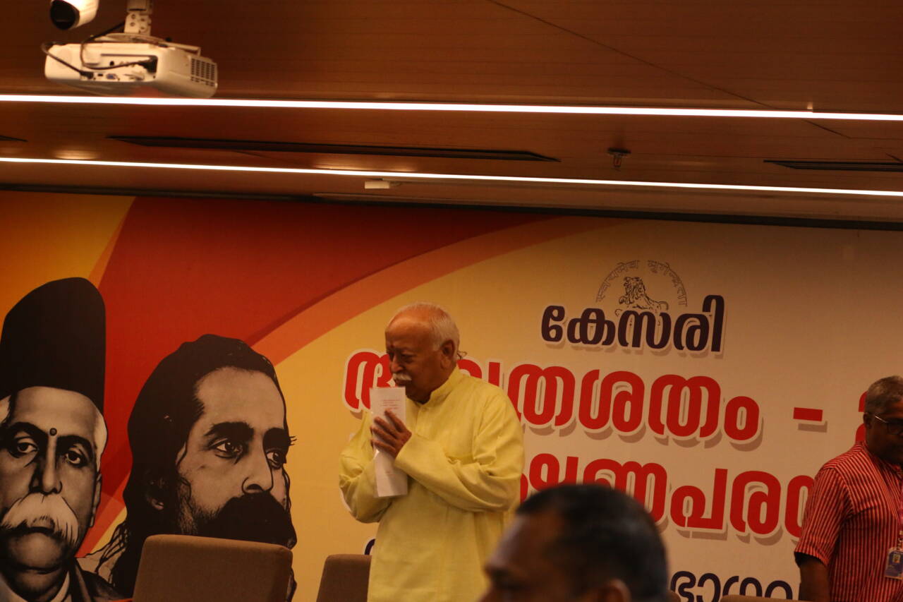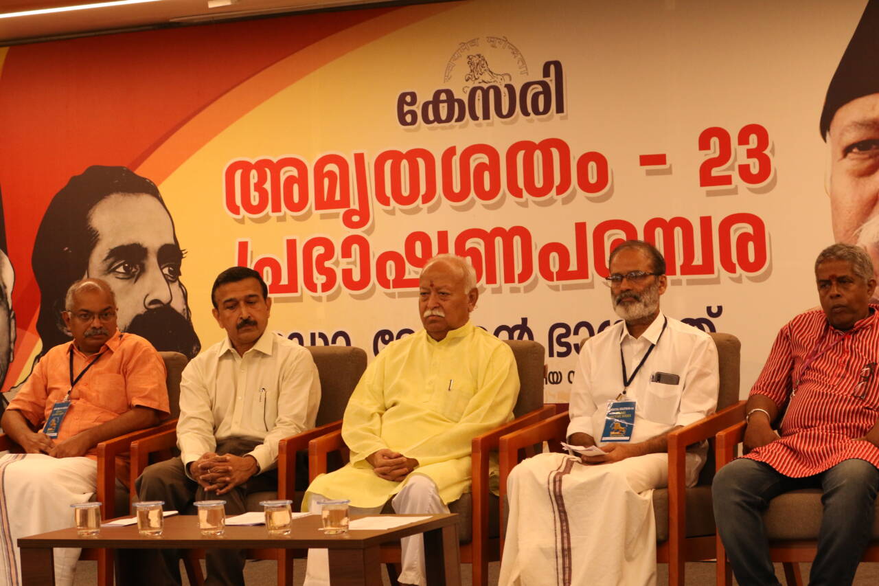 മറ്റുള്ളവര്ക്ക് മാതൃകയായി മാറാന് ഓരോരുത്തര്ക്കും കഴിയണം. സ്നേഹമാണ്, സമ്മര്ദ്ദമല്ല സംഘത്തിന്റെ രീതി. ധാരാളം നക്ഷത്രങ്ങള് രാത്രിയില്കാണാം. പക്ഷേ പകല് കാണുന്ന ഒരേയൊരു സൂര്യന് നല്കുന്ന പ്രകാശം അതിനില്ല. കാരണം, സൂര്യന് ഭൂമിയോട് അത്ര അടുത്താണ്. അങ്ങനെ ഓരോ പ്രവര്ത്തകരോടും അടുത്തുനില്ക്കുന്നതാണ് സ്നേഹത്തിലൂന്നിയ പ്രവര്ത്തനരീതിയെന്ന് അദ്ദേഹം പറഞ്ഞു. ഡോ.ജോണ് ജോസഫ് ഐആര്എസ് (റിട്ട) അധ്യക്ഷനായി. അമൃതശതം നിര്വാഹക സമിതി അധ്യക്ഷന് പി.എന്. ദേവദാസ് ഐആര്എസ് (റിട്ട) പങ്കെടുത്തു. കേസരി ട്രസ്റ്റ് ചെയര്മാന് അഡ്വ.പി.കെ. ശ്രീകുമാര് സര്സംഘചാലകന് കേസരിയുടെ ഉപഹാരം നല്കി. കേസരി പ്രചാരമാസത്തിന്റെ സംസ്ഥാനതല ഉദ്ഘാടനം ഡോ. ജോണ് ജോസഫിന് രശീതി നല്കി ഡോ. മോഹന് ഭാഗവത് നിര്വ്വഹിച്ചു. കേസരി മുഖ്യപത്രാധിപര് ഡോ.എന്.ആര്. മധു സ്വാഗതവും അഡ്വ.പി.കെ. ശ്രീകുമാര് നന്ദിയും പറഞ്ഞു.