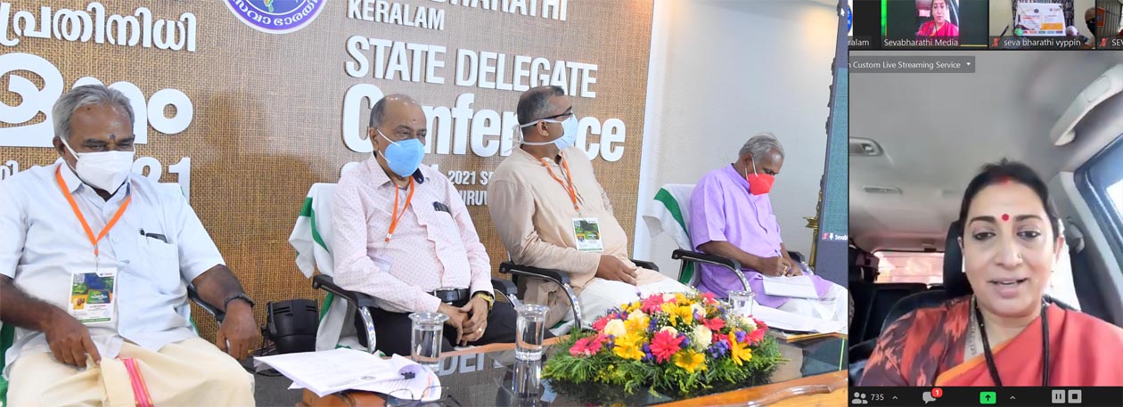 തിരുവനന്തപുരം: ജനോപകാരപ്രദങ്ങളായ പദ്ധതികള്‍ സാധാരണക്കാരില്‍ എത്തിക്കുന്നതിന് സേവാഭാരതിയുടെ പിന്തുണ അനിവാര്യമാണെന്ന് കേന്ദ്ര വനിതാ, ശിശുക്ഷേമ വികസന വകുപ്പ് മന്ത്രി സ്മൃതി ഇറാനി. ദേശീയ സേവാഭാരതി സംസ്ഥാന സമ്മേളനം ഓണ്‍ലൈനായി ഉദ്ഘാടനം ചെയ്യുകയായിരുന്നു സ്മൃതി.