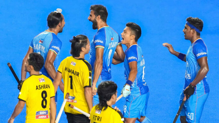 മൂന്നാം ക്വാർട്ടർ അവസാനിക്കാൻ ഒന്നര മിനുറ്റ് മാത്രം ശേഷിക്കേ ഇന്ത്യ നടത്തിയ മിന്നലാക്രമണം മലേഷ്യ ടാക്കിൾ ചെയ്തപ്പോൾ കളി കൈവിട്ടു എന്ന് തോന്നിച്ചതാണ്. പിന്നാലെ 45-ാം മിനുറ്റിൽ ഇരട്ട ​ഗോളുമായി ഇന്ത്യ മത്സരത്തിലേക്ക് തിരികെ ഇരച്ചെത്തി. പെനാൽറ്റി ക്യാപ്റ്റൻ ഹർമൻപ്രീത് കൗർ വലയിലാക്കിയതോടെ ഇന്ത്യ 3-2. സെക്കൻഡുകൾക്കുള്ളിൽ അടുത്ത പ്രത്യാക്രമണത്തിൽ ഗുർജന്ത് സിം​ഗിലൂടെ 3-3ന് ഇന്ത്യ സമനില പിടിച്ചു. ഇരു ടീമുകളും മൂന്ന് ​ഗോൾ വീതമടിച്ച് തുല്യതയിലായതോടെ ഇന്ത്യൻ ആരാധകരുടെ കണ്ണുകൾ അവസാന 15 മിനുറ്റിലേക്ക് നീണ്ടു. അവസാന ക്വാർട്ടറിൽ 10 മിനുറ്റ് ശേഷിക്കേ മലേഷ്യയുടെ പെനാൽറ്റി കോർണ‍ർ ഇന്ത്യ തടുത്തിട്ടു. ഇതിന് ശേഷം രണ്ട് ഇന്ത്യയുടെ പെനാൽറ്റി കോർണര്‍ വിജയിക്കാതെ പോയി. കളി തീരാന്‍ നാല് മിനുറ്റ് മാത്രം ശേഷിക്കേ ആകാശ്ദീപ് സിം​ഗ് 56-ാം മിനുറ്റിൽ ബുള്ളറ്റ് ഷോട്ടിലൂടെ 4-3ന് ഇന്ത്യക്ക് കപ്പുറപ്പിക്കുകയായിരുന്നു.