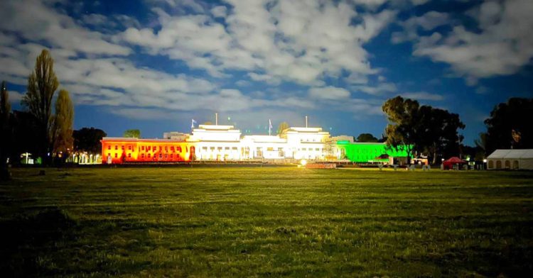 So happy to see the old Parliament house of Australia in our national colors. pic.twitter.com/vl6Ui3if8K