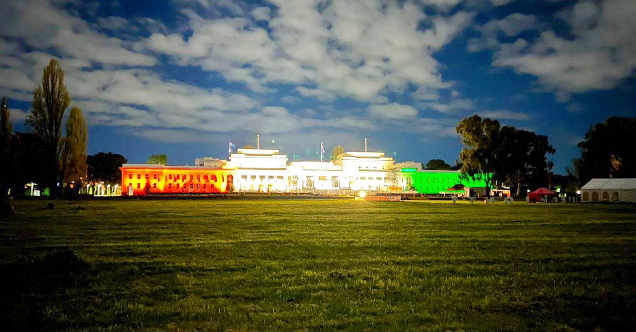 So happy to see the old Parliament house of Australia in our national colors. pic.twitter.com/vl6Ui3if8K