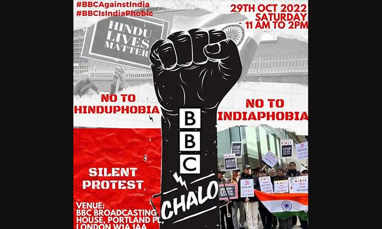 ഇന്ത്യക്കും ഹിന്ദുസമൂഹത്തിനുമെതിരെ 18 വര്ഷമായി ബിബിസി കെട്ടുകഥക പ്രചരിപ്പിക്കുകയാണെന്ന് പ്രതിഷേധക്കാര് ആരോപിച്ചു. ഇന്ത്യയില് മുസ്ലീം വേട്ട നടക്കുന്നുവെന്നും ഇന്ത്യക്കാര് പ്രാകൃതരാണെന്നും പ്രചരിപ്പിത്തുന്ന പരിപാടികളിലൂടെ അന്താരാഷ്ട്രതലത്തില് ഇന്ത്യയെ അവഹേളിക്കാനുള്ള ആസൂത്രിത നീക്കമാണ് ബിബിസിയുടേതെന്ന് ചൂണ്ടിക്കാട്ടി ഡയറക്ടര് ജനറല് ടിം ഡേവിക്ക് ഹിന്ദുസംഘടനാ നേതാക്കള് മെമ്മോറാണ്ടം നല്കി.