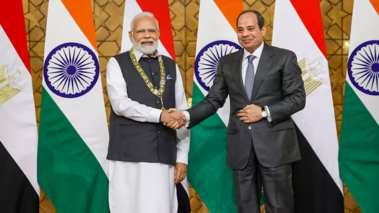 ഇരുപത്താറ് വര്ഷങ്ങള്ക്കുശേഷമാണ് നയതന്ത്ര ചര്ച്ചകള്ക്കായി ഇന്ത്യന് പ്രധാനമന്ത്രി ഈജിപ്തില് എത്തുന്നത്. ഈജിപ്ഷ്യന് പ്രസിഡന്റ് അബ്ദുല് ഫത്താഹ് എല്സിസിയുമായി മോദി കൂടിക്കാഴ്ച നടത്തി. വ്യാപാരവും നിക്ഷേപവും പ്രതിരോധവും സുരക്ഷയും ഉള്പ്പെടെ ഇരുരാജ്യങ്ങളുടെയും പങ്കാളിത്തം കൂടുതല് ആഴത്തിലാക്കുന്നതിനുള്ള മാര്ഗങ്ങള് നേതാക്കള് ചര്ച്ച ചെയ്തു. പുനരുപയോഗ ഊര്ജം, സാംസ്കാരികം, ജനങ്ങള് തമ്മിലുള്ള ബന്ധം.ഉഭയകക്ഷി ബന്ധം ‘തന്ത്രപരമായ പങ്കാളിത്ത’ത്തിലേക്ക് ഉയര്ത്തുന്നതിനുള്ള കരാറില് നേതാക്കള് ഒപ്പുവച്ചു.കൃഷി, പുരാവസ്തു, പുരാവസ്തുക്കള്, മത്സര നിയമം എന്നീ മേഖലകളിലെ മൂന്ന് ധാരണാപത്രങ്ങളും ഒപ്പുവച്ചു.