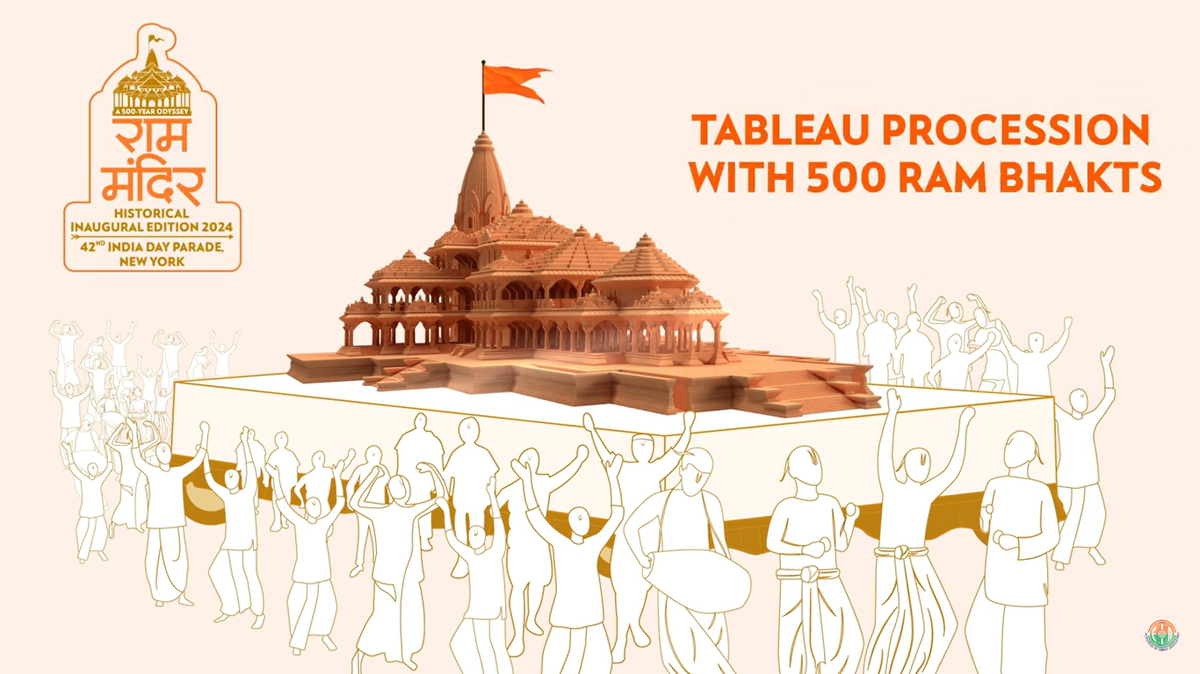 ചടങ്ങിൽ വിശ്വഹിന്ദു പരിഷത്ത് ഓഫ് അമേരിക്ക (വിഎച്ച്പിഎ), ബോചസൻവാസി അക്ഷര പുരുഷോത്തം സ്വാമിനാരായൺ സൻസ്ത (ബിഎപിഎസ്), സിദ്ധിവിനായക് ക്ഷേത്രം എന്നിവയുടെ പ്രതിനിധികൾ ചേർന്ന് രാം മന്ദിർ ഫ്ലോട്ടിന്റെ ചെറിയ പകർപ്പ് അനാച്ഛാദനം ചെയ്തു.