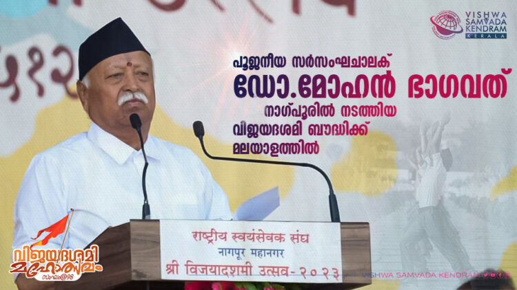 രാക്ഷസീയതയ്ക്ക് മേല് മാനവികതയുടെ സമ്പൂര്ണ വിജയം കുറിച്ച ശക്തിപര്വം എന്ന നിലയില് എല്ലാ വര്ഷവും നമ്മള് വിജയദശമി ഉത്സവം ആഘോഷിക്കുന്നു. ഈ വര്ഷം വിജയദശമി എത്തുന്നത് നമുക്ക് അഭിമാനവും സന്തോഷവും ഉത്സാഹവും സൃഷ്ടിക്കുന്ന സംഭവങ്ങളുമായാണ്.