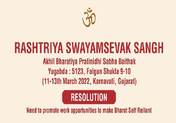 സമൃദ്ധമായ പ്രകൃതിവിഭവങ്ങള്, വിപുലമായ മാനവശേഷി, സ്വതഃസിദ്ധമായ സംരംഭകത്വമികവ് എന്നിവ കൊണ്ട് നമ്മുടെ കാര്ഷിക-നിര്മാണ-സേവനമേഖലകളില് പരിവര്ത്തനം വരുത്തി, ധാരാളം തൊഴിലവസര ങ്ങള് സൃഷ്ടിച്ച്, സാമ്പത്തികരംഗത്തെ പുതിയ ഉയരങ്ങളിലെത്തിക്കാന് ഭാരതത്തിന് കഴിയും. സമീപകാലത്ത് കോവിഡ് മഹാമാരി തൊഴില്, ഉപജീവനമേഖലകളില് പ്രതിഫലിച്ചെങ്കിലും അത് സൃഷ്ടിച്ച പുതിയ അവസര ങ്ങള് സമൂഹത്തിലെ ചില വിഭാഗങ്ങള്ക്ക് നേട്ടങ്ങള് സൃഷ്ടിച്ചിട്ടുണ്ട്. സമ്പൂര്ണസമാജവും അത്തരം അവസര ങ്ങള് ഉപയോഗപ്പെടുത്തി തൊഴില് മേഖലയിലെ വെല്ലുവിളികള് ഇല്ലാതാക്കാന് വര്ദ്ധിതവീര്യത്തോടെ പ്രവര്ത്തനസജ്ജമാകണമെന്ന് ആര്എസ്എസ് അഖിലഭാരത പ്രതിനിധി സഭ ഊന്നിപ്പറയുന്നു.