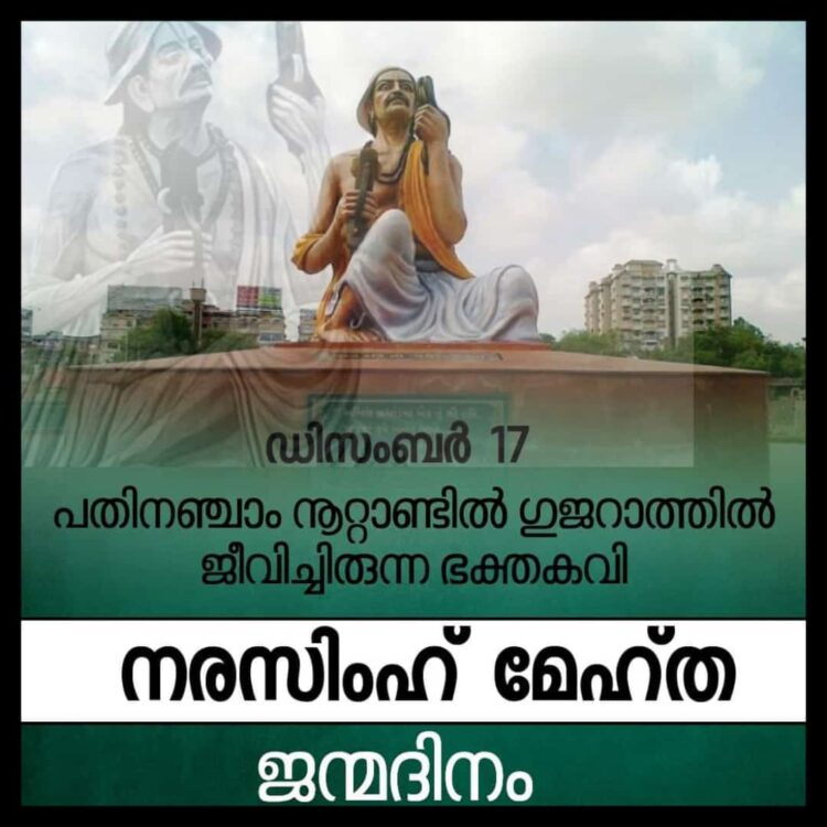 പതിനഞ്ചാം നൂറ്റാണ്ടിൽ ഗുജറാത്തിൽ ജീവിച്ചിരുന്ന ഭക്തകവിയാണ് നരസിംഹ് മേഹ്ത. ഭക്തശിരോമണിയായ അദ്ദേഹം നിരവധി ഭക്തി ഗീതങ്ങൾ രചിച്ചിട്ടുണ്ട്. ഗുജറാത്തിയിലെ ആദി കവിയെന്നറിയപ്പെടുന്ന ഇദ്ദേഹം ഗുജറാത്തിലും ഉത്തര ഭാരതത്തിലും വളരെ ആദരിക്കപ്പെടുന്നു. “വൈഷ്ണവ ജൻ തൊ” എന്ന പ്രശസ്തമായ ഭജനം ഇദ്ദേഹത്തിന്റെ രചനയാണ്.