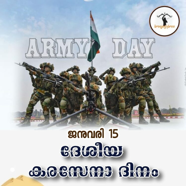 ഇന്ന് കരസേനാ ദിനം. രാജ്യത്തിന് വേണ്ടി ജീവന് ബലിയര്പ്പിച്ച വീര സൈനികര്ക്ക് ആദരവര്പ്പിക്കുന്ന ദിനം. സൈനികരുടെ പോരാട്ടവീര്യത്തേയും ത്യാഗത്തേയും ഓര്മ്മപ്പെടുത്തുന്ന ദിനം. സ്വതന്ത്ര ഇന്ത്യയുടെ ആദ്യത്തെ സൈനിക തലവനായി ജനറല് കെ എം കരിയപ്പ സ്ഥാനമേറ്റതിന്റെ ഓര്മ്മയ്ക്കായാണ് നാം ജനുവരി 15 കരസേനാ ദിനമായി ആചരിക്കുന്നത്.