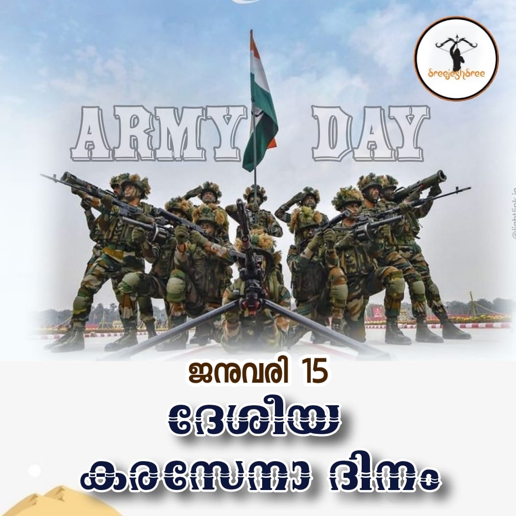 ഇന്ന് കരസേനാ ദിനം. രാജ്യത്തിന് വേണ്ടി ജീവന് ബലിയര്പ്പിച്ച വീര സൈനികര്ക്ക് ആദരവര്പ്പിക്കുന്ന ദിനം. സൈനികരുടെ പോരാട്ടവീര്യത്തേയും ത്യാഗത്തേയും ഓര്മ്മപ്പെടുത്തുന്ന ദിനം. സ്വതന്ത്ര ഇന്ത്യയുടെ ആദ്യത്തെ സൈനിക തലവനായി ജനറല് കെ എം കരിയപ്പ സ്ഥാനമേറ്റതിന്റെ ഓര്മ്മയ്ക്കായാണ് നാം ജനുവരി 15 കരസേനാ ദിനമായി ആചരിക്കുന്നത്.