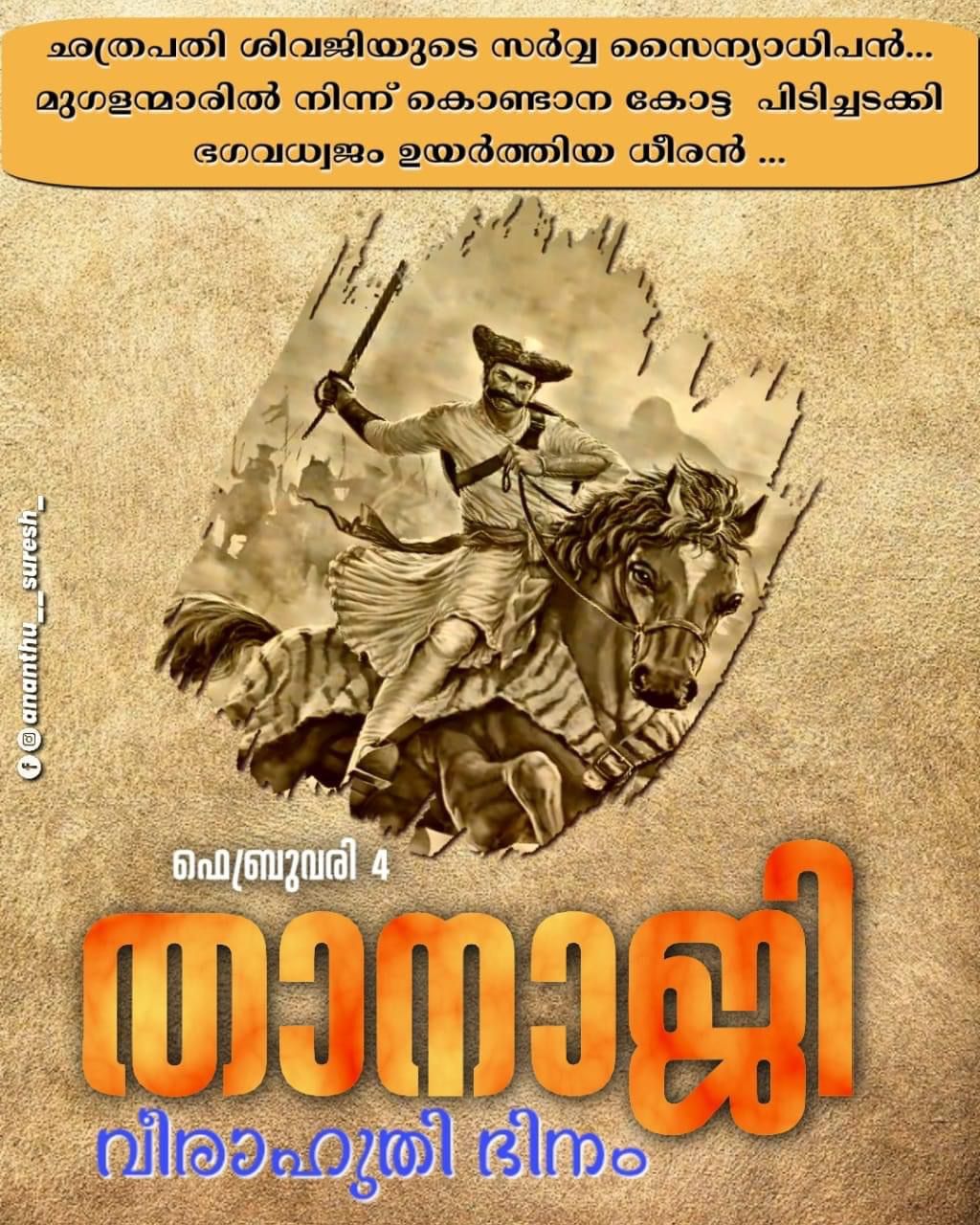 ഭാരതത്തിന്റെ പകുതിയോളം മുഗൾ സാമ്രാജ്യത്തിന്റെ കൈപിടിയിൽ നിന്നും മോചിപ്പിച്ചു കൊണ്ടു ഹൈന്ദവ സ്വരാജ് സ്ഥാപിച്ച ഛത്രപതി ശിവാജി മഹാരാജാവിന്റെ സൈന്യാധിപന്മാരിൽ ഒരാൾ ആയിരുന്നു താനാജി. ഇന്നും മറാഠാ