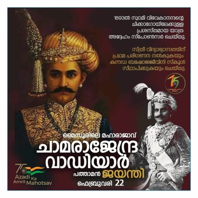 1893-ൽ സ്വാമി വിവേകാനന്ദന്റെ ചിക്കാഗോയിലേക്കുള്ള പ്രശസ്തമായ യാത്ര അദ്ദേഹം സ്പോൺസർ ചെയ്തു. സ്ത്രീ വിദ്യാഭ്യാസത്തിന് പ്രഥമ പരിഗണന നൽകുകയും കന്നഡ ബഷോജ്ജീവിനി സ്കൂൾ സ്ഥാപിക്കുകയും ചെയ്തു. നിരവധി വ്യാവസായിക സ്കൂളുകൾ സ്ഥാപിക്കുകയും വാർഷിക ദസറ വ്യാവസായിക പ്രദർശനം നടത്തുകയും ചെയ്തുകൊണ്ട് അദ്ദേഹം മൈസൂർ രാജ്യത്തിന്റെ വ്യവസായവൽക്കരണത്തിന് നിരവധി സംഭാവനകൾ നൽകി. കർഷകർക്ക് ധനസഹായം നൽകുന്നതിനായി കാർഷിക ബാങ്കുകൾ സ്ഥാപിക്കുന്നതുൾപ്പടെ നിരവധി പദ്ധതികൾ നടപ്പാക്കിയ അദ്ദേഹം
