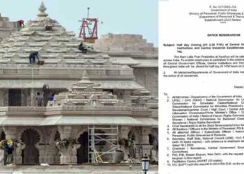 ന്യൂദല്ഹി : അയോദ്ധ്യ പ്രാണ പ്രതിഷ്ഠാ ചടങ്ങിനോടനുബന്ധിച്ച് ജനുവരി 22ന് കേന്ദ്ര സര്ക്കാര് ഓഫീസുകള്ക്ക് പകുതി ദിവസം അവധി. പൊതുജന താത്പ്പര്യം പരിഗണിച്ച് തിങ്കളാഴ്ച 2.30 വരെയാണ് ...
